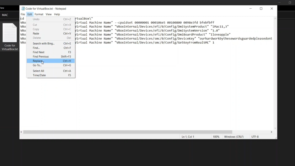 - Now in the downloaded files, there is a file named code for VirtualBox.text open it.