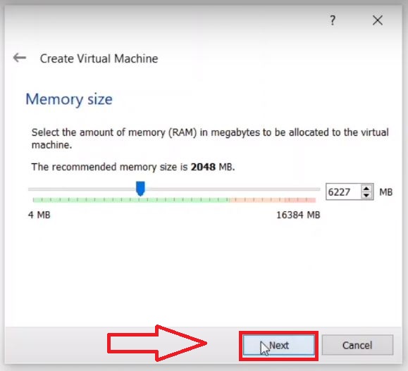 - Next the Memory Size menu will appear drag the button till the green line and click on the Next button.